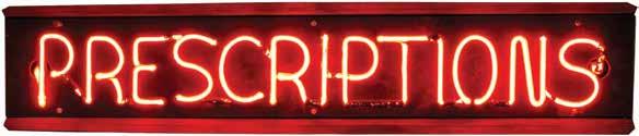 47” x 22” x 17”. DSP. Maker marked, “Kirn Signs.” An exceptionally rare and unique c. 1950s new old stock “Cool” Ice double-sided porcelain neon sign, complete with the labeled original shipping crate. CONDITION: Side 1 has outstanding color and gloss throughout. The sign presents a virtually flawless inner and outer field, with the exception of very minor surface staining and a missing neon standoff. The outer edges of the sign show two minor sections porcelain loss on the extreme outer edge of the piece (9.25). Side 2 also has strong color and gloss, with only very minor surface staining to note. The outer edges of the sign have slightly more porcelain loss than the previous side, and the sign is missing an original bolt from the outer edge and standoff (9.25). The can is in excellent condition, with only minor areas of surface staining to note. The wooden crate is addressed from: Art Neon in Chicago to the Fulton Theater in Fulton, MO. The electric is newly done, and the neon lights blue on both sides. This is not a standard shippable item and will require 3rd party shipping or pickup arrangements to be made. (9.25, 9.25) 4,000 - 10,000