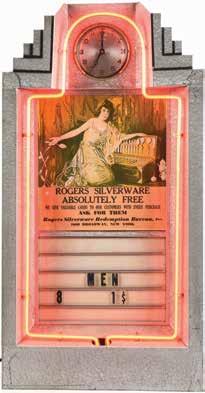 33” x 3.5” x 12.5”. Maker marked, “Tobin Electric St. Louis.” C. 1950s traveling salesman Neon Color Selection sample housed in the original case. CONDITION: Display shows minor areas of repaint throughout the labeling on the inside. Case has wear throughout the lid and base but remains solid with functioning electric and latches. This is not a standard shippable item and will require 3rd party shipping or pickup arrangements to be made. (Good) 1,000 - 2,000