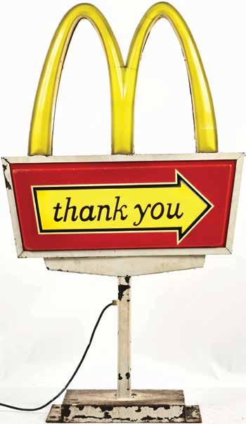 43” x 24” x 89”. DST. Excellent displaying double-sided Bowl painted metal neon die-cut sign. CONDITION: Side 1, has outstanding color and gloss throughout with only extremely minor surface stains to note. (9.5). Side 2, also has impeccable color and gloss with only very light surface stains to note. (9.5). Can is in excellent like-new condition with newly added working electrical, as well as red and light blue glass. This is not a standard shippable item and will require 3rd party shipping or pickup arrangements to be made. (9.5, 9.5) 2,000 - 4,000