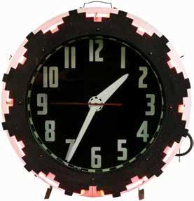 116” x 22” x 39”. DSP. Outstanding C. 1950s double-sided Porcelain Parking neon sign highlighted by an eye-catching flashing neon feature. CONDITION: Side 1 has good color and shine throughout with significant hazing along the background of the arrow. Sign also displays a section of porcelain loss on the outer field and on the outer edge of the piece (8.5). Side 2 has good color and gloss throughout with only very minor hazing in a handful of areas on the face of the piece. Sign exhibits very minor surface staining, as well as porcelain loss on the outer edges (9.0). Sign is attached to a new can and has newly added electric. The neon lights red and green, plus displays a flashing feature at the tip of the arrow on both sides. This is not a standard shippable item and will require 3rd party shipping or pickup arrangements to be made. (8.5, 9.0). 5,000 - 10,000