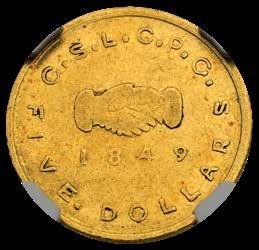 175 - 1849 $5 MORMON FIVE DOLLAR GOLD AU53 NGC. 20,000 - 30,000