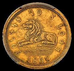 187 - 1860 $5 MORMON FIVE DOLLAR AU53 PCGS.