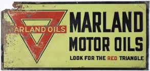1022 - MARLAND OILS COMPLETE GREASING SERVICE PORCELAIN SIGN W/ TRIANGLE GRAPHIC.