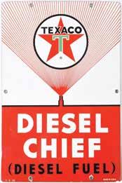 12” X 6”. SSP. C. 1950’s. Union Oil Company, Los Angeles, California. CONDITION: Excellent color & gloss throughout with no field chipping. Minor nicks at the mounting holes with light wear and stain marks along the outer edge. Brilliant and well displaying and should clean up nicely if desired. (GRADE 93). 250 - 500