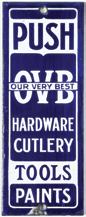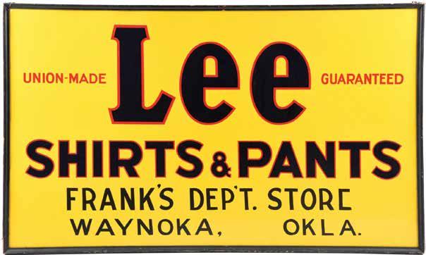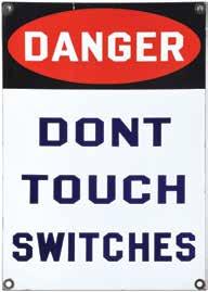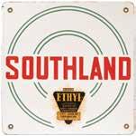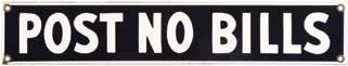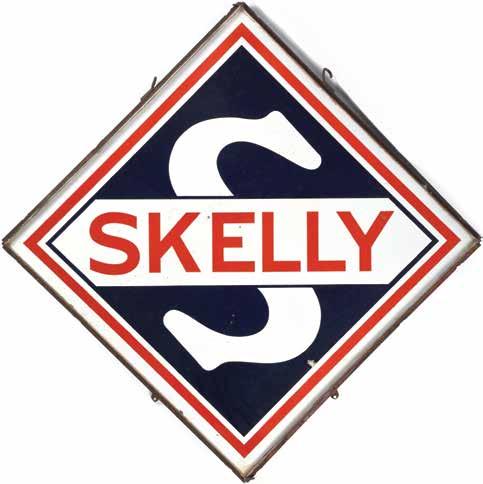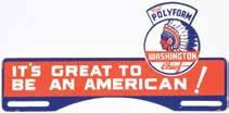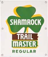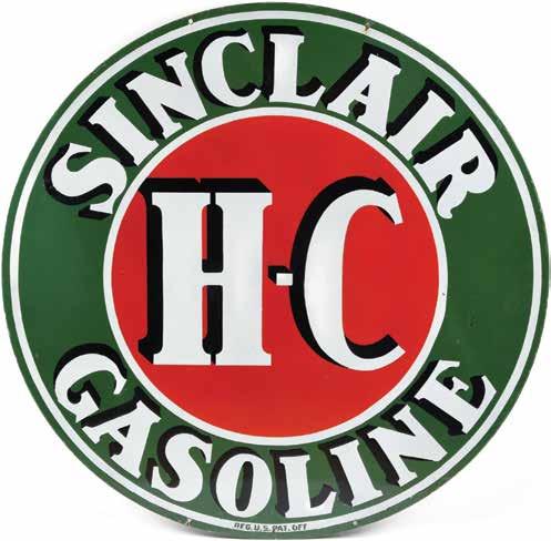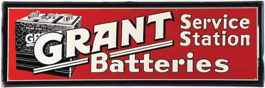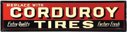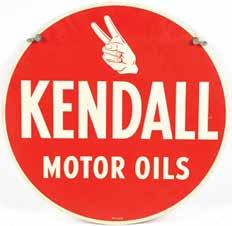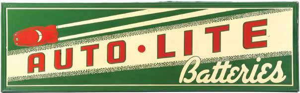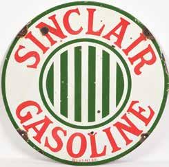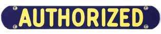 23” X 4”. SSP. Dated 1946. CONDITION: Excellent color & gloss throughout the field showing very light stain marks in the white with no chipping in the inner or outer field. Sign shows all four grommets intact with light mounting hole and edge wear. A very well displaying example. (GRADE 92). 300 - 600