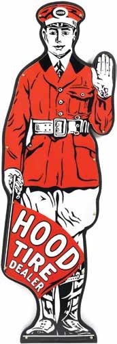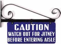 18’ X 12”. SSP. Sign is Dated 1949. CONDITION: Sign shows very good color & gloss throughout with one chip in the hat as well as some minor surface scratches. Sign shows some chipping at two mounting holes as well as some minor nicks along the outer edge. (GRADE 85). 200 - 400
