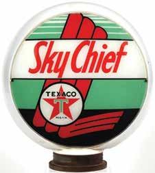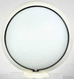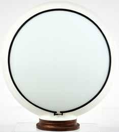 Lenses: 13.5” Dia. Complete 13.5” Globe On Capco Body. A product of Fleet Wing Corporation, Cleveland, Ohio. CONDITION: Lens one is overall outstanding showing excellent color & gloss with no notable field wear. Lens one shows minimal nicks along the outer edge as well as some light mounting notch wear, (GRADE 96). Lens two is also excellent showing bright color & gloss with no notable field wear. Lens two shows a nick at the left mounting notch with some minimal outer edge wear, (GRADE 91). Lenses are set on a red capco body which shows no notable body wear as well as a clean base. (GRADE 96 & 91). 600 - 1,200