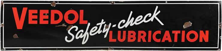 14.25” X 10”. SSP. C. 1930’s Porcelain Sign for Veedol Motor Oils & Greases showing embossed field with flat outer edge. CONDITION: Fair color & gloss with moderate to heavy chipping in the outer fields and edges. Mounting holes also show heavy chipping but overall displays nicely. (ORIGINAL). 250 - 500