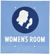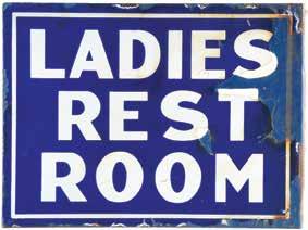 16” x 12”. DSP. Maker Marked “Veribrite Signs-Chicago.” A C. 1930’s double sided porcelain flange sign with large “Ladies Rest Room” lettering. CONDITION: Side 1 shows discoloration and porcelain chipping in the field. The outer edges show heavy porcelain loss with areas of touched up paint confined to the outer edges and flange section of the sign (6.75). Side 2 is similar with porcelain loss and discoloration in the field. There are a few chips in the field, as well as, chips around the outer edges that have all been touched up at some point in the past (6.5). (6.75,6.5). 300 - 600