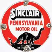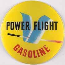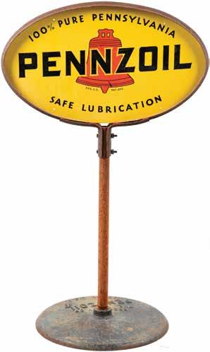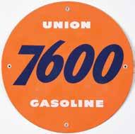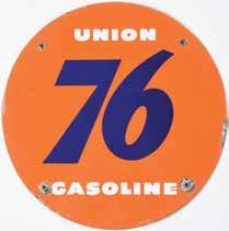 11.5” Dia. SSP. C. 1940’s. Union Oil Company, Los Angeles, California. CONDITION: Excellent color & gloss with minor surface scratching in the field. Chipping at the mounting holes with all four original grommets intact. Chipping at the right edge with minimal nicks at remaining outer edge. (GRADE 85). 250 - 500