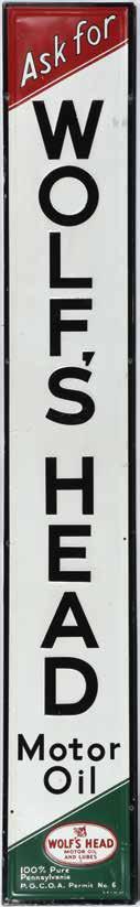 53.5” x 17.5” SST. Maker Marked M.C.A. CONDITION: Excellent color & gloss with minimal field wear showing minor scuffs at upper and lower edge near mounting holes. Raised outer edge shows some minor scuff marks but overall excellent. A tremendous example perfect for any collection. (9.0+). 600 - 1,200