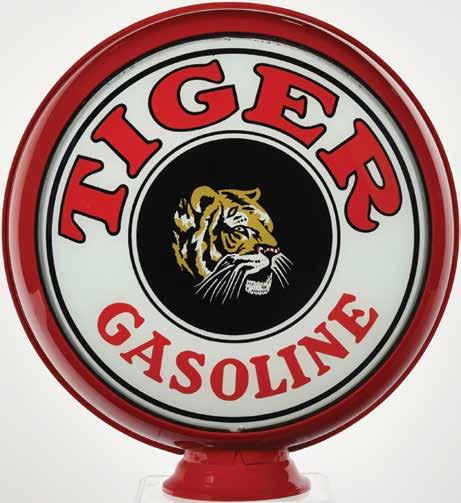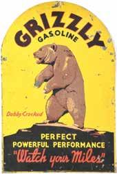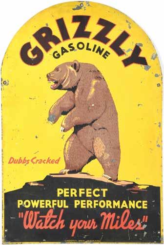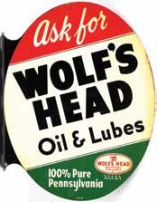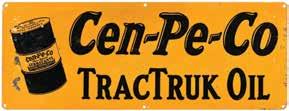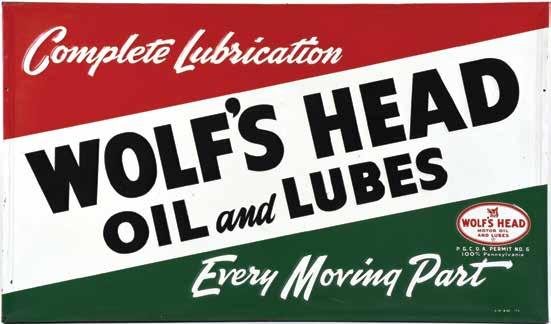 1008 - POWERLUBE MOTOR OIL PORCELAIN SIGN W/ TIGER GRAPHIC. 28” X 20”. DSP. Sign is Maker Marked Wolverine Porcelain - Detroit. C. 1930’s. The Powerine Company, Denver, Colorado. CONDITION: Side one is excellent showing outstanding color & gloss throughout with just a few minor spots of discoloration and fine surface scratch. Side one shows one small nick in the lower field with some faint edge nicks and light mounting hole wear, (GRADE 90). Side two shows good color & gloss throughout with the typical fading of side two that most Powerlube’s present. Side two shows some minor surface scratches as well as some light discoloration and nicks along the outer edge, (GRADE 80). One of this finer Powerlube Signs we have sold, a very scarce piece to find in high grade. (GRADE 90 & 80). 5,000 - 10,000