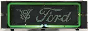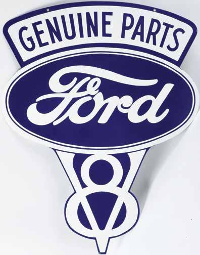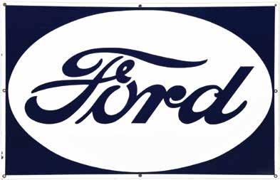 39” x 25”. SSP. A clean and glossy example of this C. 1930’s single sided porcelain sign from The Ford Motor Company featuring their iconic script logo. CONDITION: The field of this sign retains phenomenal color and gloss. The only blemish in the field to report is a light horizontal surface scratch in the top right corner that extends from the blue into the white. All of the mounting holes retain their original grommets except the top right corner. The only damage to note on this sign is three very small areas of porcelain chipping on the left hand border of the sign. A clean and desirable example (9.0). (9.0). 4,500 - 6,500