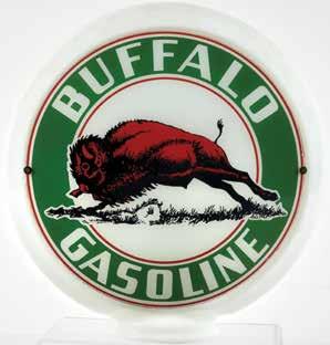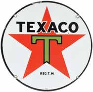 9.75” Dia. SSP. C. 1950’s Porcelain Pump Plate showing “Regular Gasoline”. CONDITION: Excellent color & gloss throughout with minor surface scratching in the white backing as well as some minor wear in the outer red field. Mounting holes are in very good condition showing original grommets and the outer edge shows just minimal nicks. An excellent example. (GRADE 90). 300 - 600