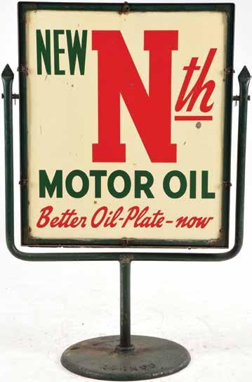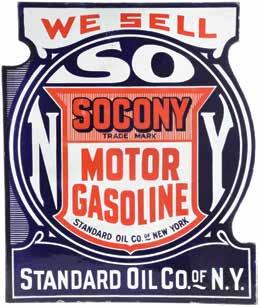 35.75” X 17.75”. SSP. C. 1920’s. Standard Oil Company of New Jersey. CONDITION: Sign shows full restoration with minor scratches and surface blemishes present from age. Mounting holes and outer edges show minor wear but overall outstanding and well displaying. (RESTORED). 1,000 - 2,000