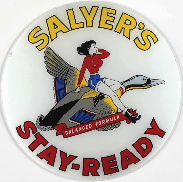 18” X 12”. SSP. Dated 1956. CONDITION: Excellent color & gloss throughout with no notable field wear showing just a few minor surface scratches. Light chipping at the mounting holes as well as some minor wear along the outer edge. A very bright and glossy example. (GRADE 90).