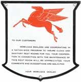 1629 - MOBILGAS PORCELAIN PUMP PLATE SIGN W/ PEGASUS GRAPHIC. 12” X 12”. SSP. Maker Marked Ingram Richardson & Dated 1954. CONDITION: Excellent color & gloss throughout with minor surface scratching in the field as well as one chip at the upper wing graphic. Minor nicks at the mounting holes with light nicks along the outer edge. (GRADE 84). 300 - 600
