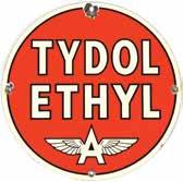 Largest: 14” Dia. Collection Consists Of: One Single Sided Porcelain Sign showing “Ethyl” and one Single Sided Tin Sign for National Liberty Insurance Agency. CONDITION: Both signs are in very good condition showing minor areas of surface scratching and wear in the field but no notable areas of heavy damage. Ethyl shows minor chips at the edge with the in surface sign showing some paint wear at the edge. Overall a very nice pair of original advertising signs. (VARIOUS). 250 - 500