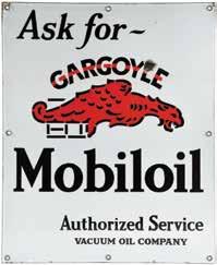 1026 - MOBILOIL CERTIFIED SERVICE PORCELAIN SIGN W/ GARGOYLE GRAPHIC.