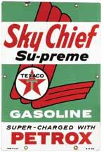 1649 - TEXACO SKY CHIEF GASOLINE PORCELAIN PUMP PLATE SIGN.