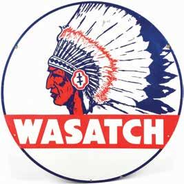40” X 28”. SSP. Maker Marked Veribrite Signs - Chicago. C. 1930’s. CONDITION: Very good color & gloss throughout showing areas of surface scratching in the inner field with light chipping in the outer field as well as some staining at the upper right. Moderate chipping at the mounting holes as well as notable edge wear. Rare and well displaying. This is not a standard shippable item and will require 3rd party shipping or pickup arrangements to be made. (GRADE 84).