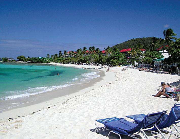 Bolongo Bay is located on the southern coast. Known for its coral reef that prevents heavy boat traffic, Bolongo is a favorite for snorkeling. Enjoy the calm waters, 1,000-foot golden sand beach, over 100 coconut trees rustling in the breeze and local iguanas strolling past. You can wine and dine at Iggies’ Oasis Res taurant & Poolbar or book a sailing excursion on Heavenly Days. (#8 on map)