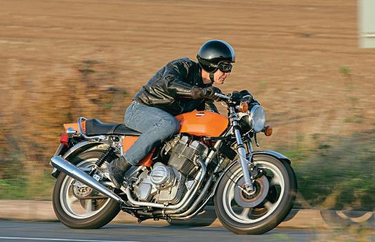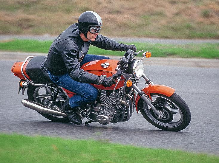 Positive updates over time included newMarzocchi forks, revised seat, leftfoot gearchangeand optional half-fairing. Paintwork,whichwas redorgreen in 1976, changed to silver,then gold, then orange for three yearsfrom1979. But progress from Japan wasfar moredramatic. By 1981, Suzuki’sGSX1100 and Kawasaki’s GPz1100 were making 100bhp and Honda
