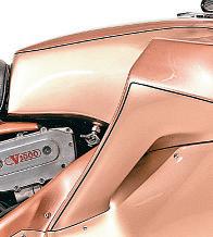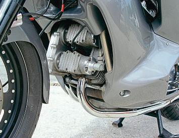 ENGINE: Air-cooled,90-degree V-twin;95mm boreby70mm stroke,giving 992cc. Forged steel crankshaft,rollermain bearings; steel connecting rods with splitbig ends housing Vandervell copper-lead shell type bearings.Aluminium jacketsonironcylinderbarrels; aluminium cylinderheads. Four valves percylinder, eachactuated throughbucket tappets from an overheadcamshaft: 3/8in pitch rollerchaindrivetocamshaftswith slippertypeadjustable tensioners. CARBURATION: TwoDellorto PFH carburettors with 36mm chokes.Air filters with replaceable paperelements IGNITION: Fullyprogrammable electronic system,single 12mm plug per cylinder.