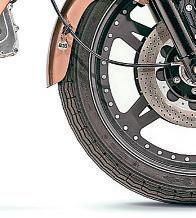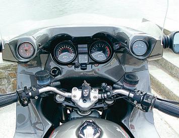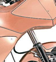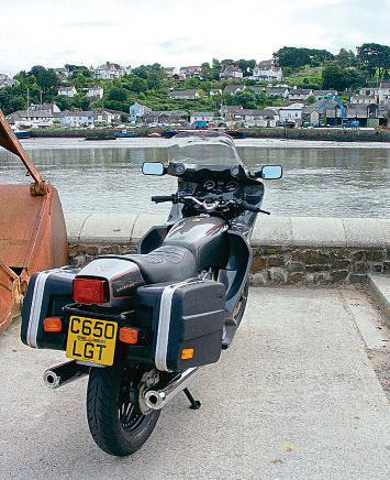 Iamveryfamiliar with riding motorcyclesequipped with big touring fairings, butevenso, Iwas surprised at thevisual impression of great bulk. Iuse my wordsherecarefully–this is a‘visual impression.’Once youare moving and have lifted up your feet, the bike rides lightlyenough.