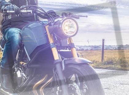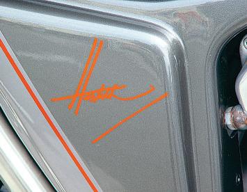 And the riding package is as effcient as it is striking. The fairingisverygood at defecting the wind.I doubt that it is brilliant at keeping the rider’slegsdry in the persistent rain, but the upper fairingis very smooth, let down formebyturbulence over the screen. Hesketh offered several screen heights, though, so that maywell be fxable