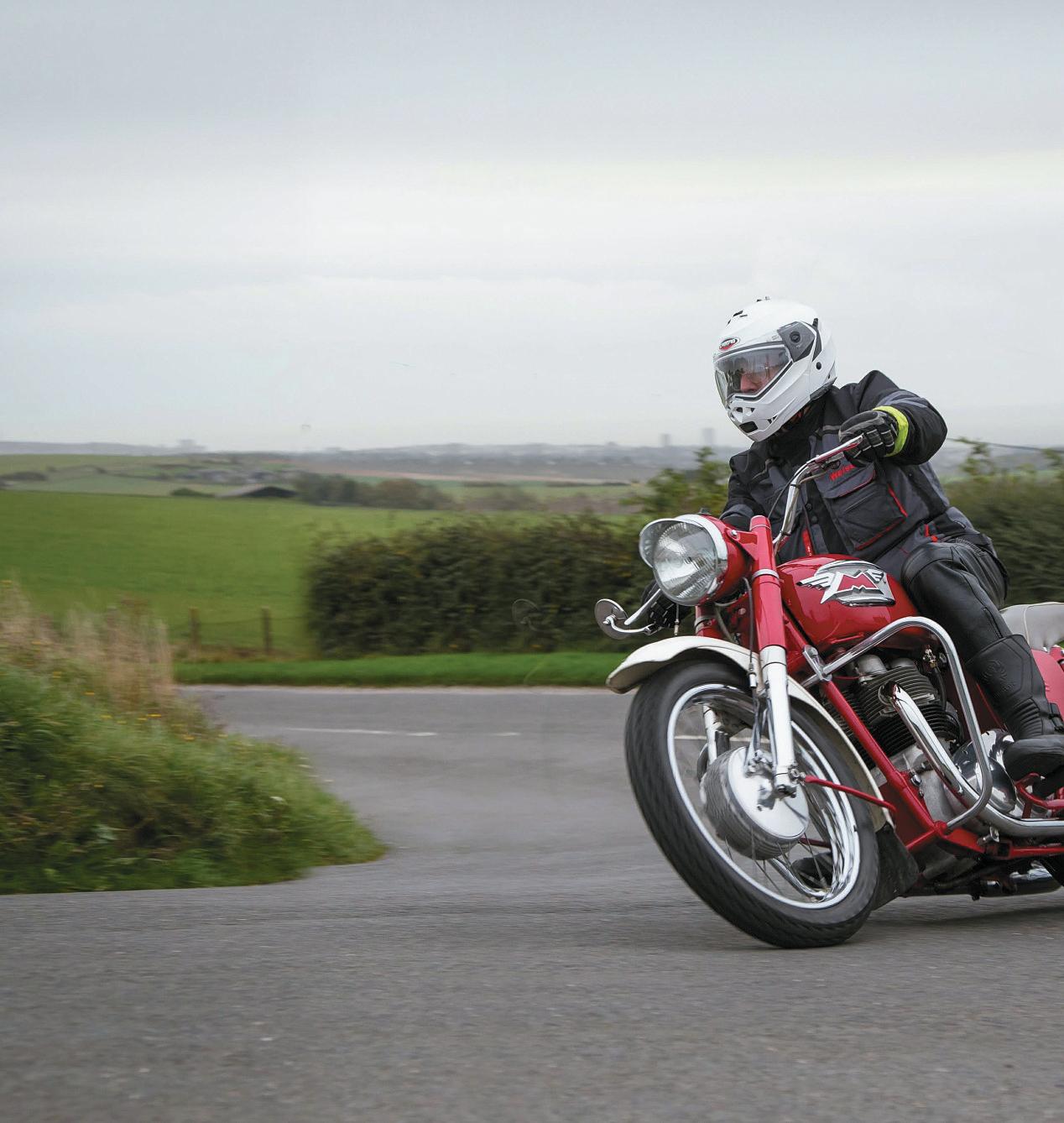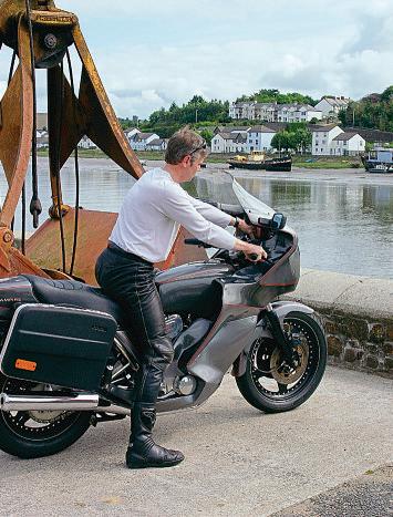 Then we rode alot more. The further we rode,the better Iliked LordHesketh’s big twin. Apartfromthe stupidlyhighfrst gear,that is. It is very smooth. It is very fast. It is rapid, rather than quick, anditis very comfortable. The seat is high, at