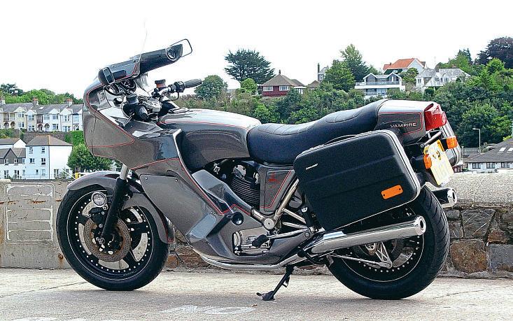 It soon died. This usually happens. Less usually, it wasreborn, initiallyas that same V1000, gentlyre-engineered throughoutthe company’ssee-sawing fortunes, and then as the fully-faired Vampiretourer, as seen here. Hitting the road aboardboth of Keith’sHeskeths was acompletely memorable experience,not leastbecause it wasawhole galloping load of funtoride,unlike acouple of other examples of that rare breed to pass through my clutches over the years.