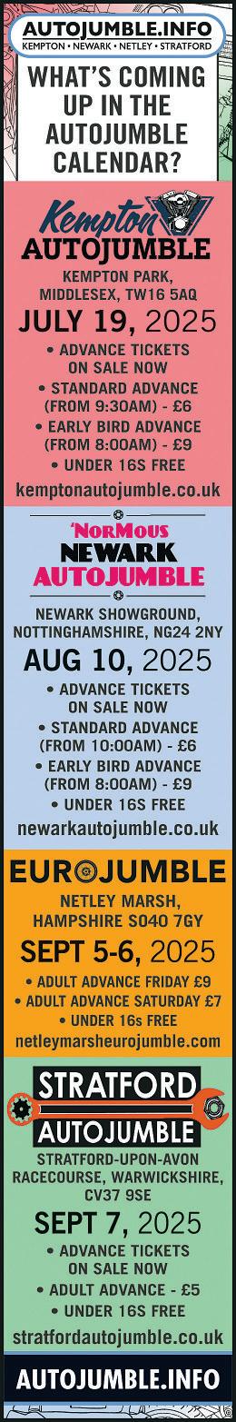 Ardingly Autojumble South of England Showground, Selsfield Road, Ardingly, Haywards Heath, West Sussex RH17 6TL. www.elkpromotions. co.uk. 27 Stickney Autojumble Main Road, LincolnshirePE22 8AG: www.stickneycarbootsale. co.uk 27 National BMW Airhead Day Sammy Miller Museum. sammymiller.co.uk.