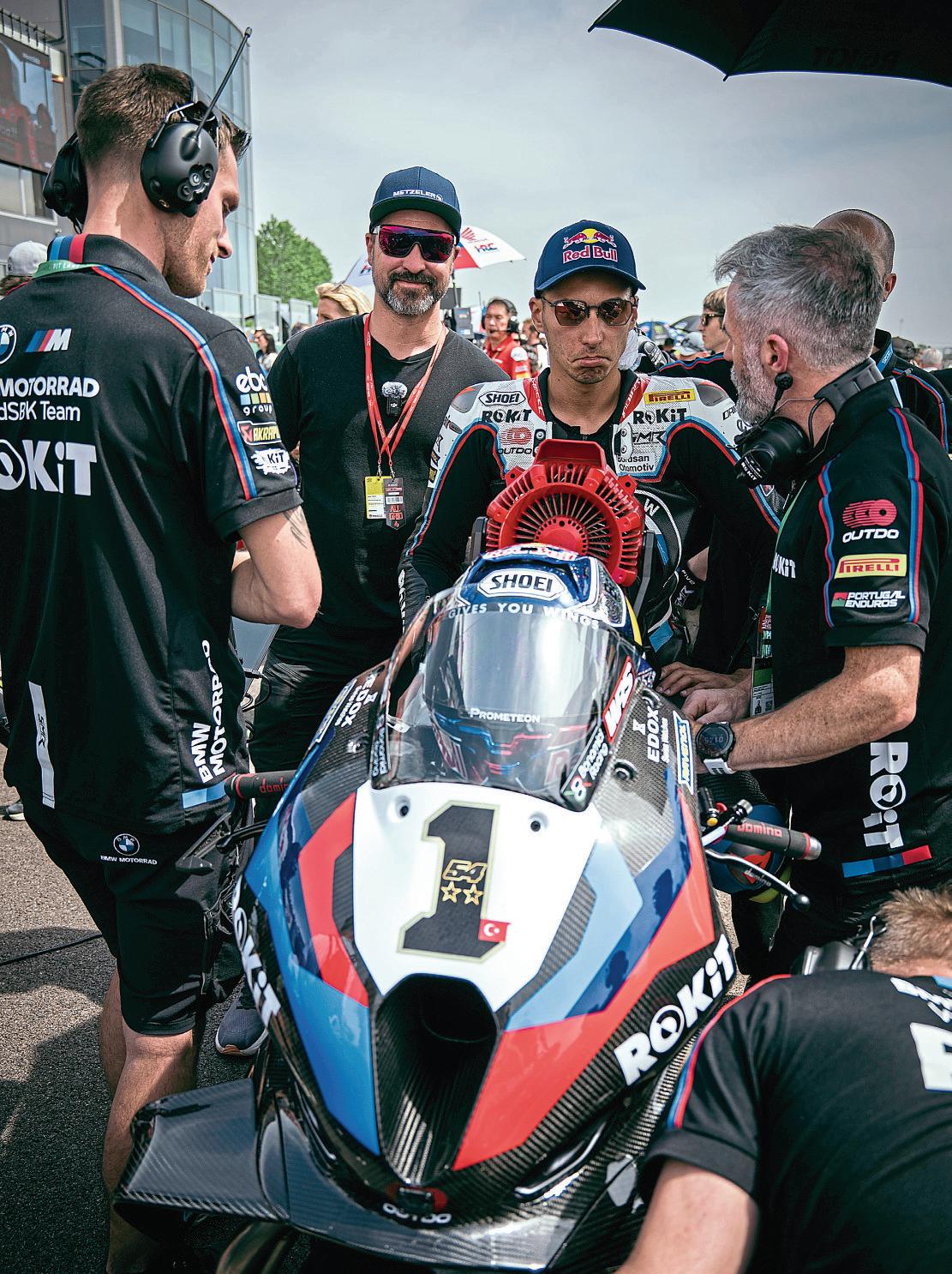 Afew laps in thehot seat There’sabit of aparty atmosphereinthe Cremona circuitpitlane as the ROKiT BMW Motorrad WorldSBK Team membersfre up Toprak Razgatlioglu’sBMW M1000 RRand beckonmetoclimb aboard.