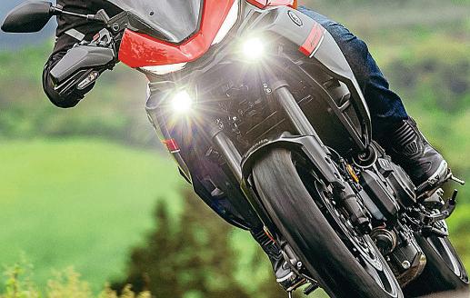 This is afairly hefty update for Yamaha’s middleweight adventure machine.Itgets the new Euro5+ engine,ofcourse,which uses a new ride-by-wire engine management set-up to improve emissions but also gives easyaccess to aheap of modernfunctions –cruise control, rider power modes and more sophisticated rider aids like switchable traction control. Power is about the sameas before at 72bhp though, and with adecent 203kg wet weight, it should be lively enough for the class