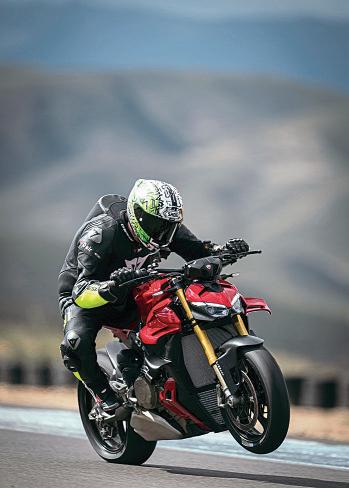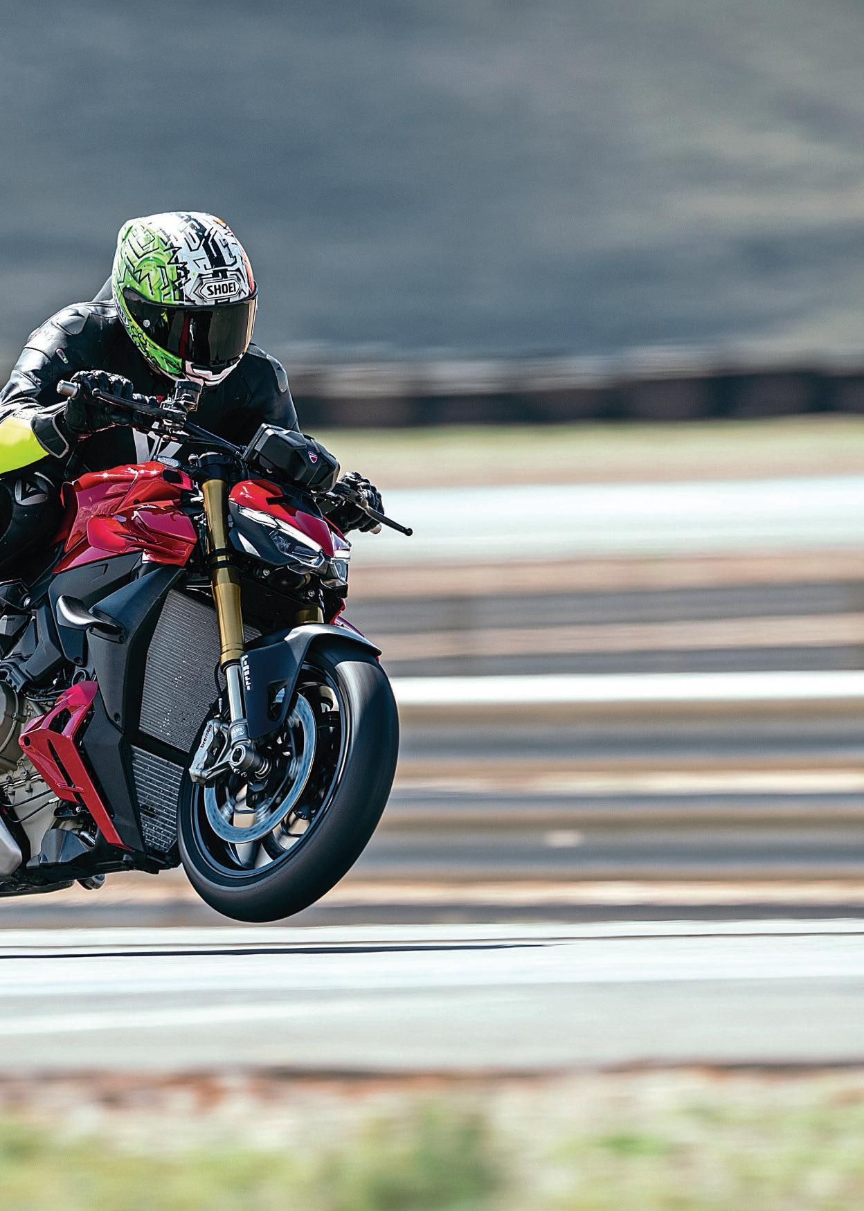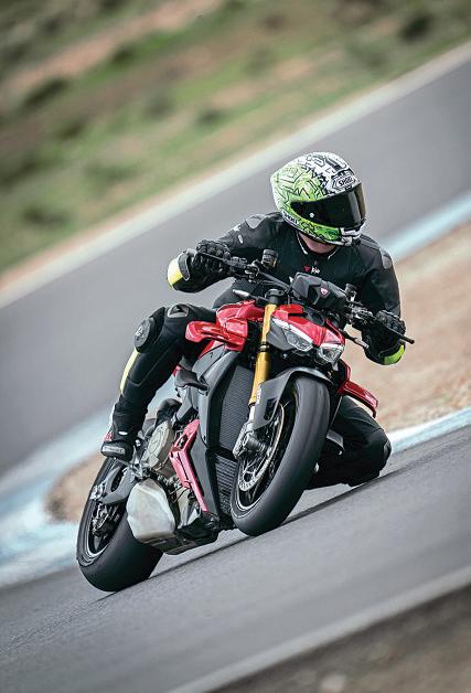 Imagine if therewas abikethata bang-average fast grouptrackdayrider could taketowithin 10%ofalap time set by that very bike’slead test rider.Not onlythat, but to do so at atrack that our trackdayrider hasnever seen before,and which is notoriouslytechnical and diffcult to learn… in just six 20-minute sessions compared to the test rider’shundreds of laps thereovermanyyears. Well, there’sno need to imagine it, because the track was the Andalucia circuit, the test rider was Ducati’s AllesandroValia, the trackdayrider was… me –and the bikeisthe 2025 Ducati Streetfghter V4S.