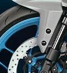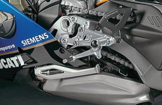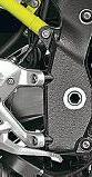 Lifted straig ht from thePanigale, which meansit’s17% lighterand has4 0% less laterals tiffness co mp ared to last year ’s bike.Reducinglateral stif fnes s co mp ensatesfor thesuspensionnot work ingathig hleanangles.
