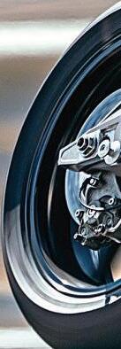 The‘front frame’ is 40% less stiff laterally than the previous model and 17% lighter, which arehuge numbers, and not just little tweaks. Much chassis design nowadays is being infuenced by the extragrip tyres produce,and the high anglesoflean made possible by them, which –asisoften the case –while good for going through acorner quicker,thereisa compromise.The laws of physicsstate that the higher the angle of lean, the less load is transferred through the suspension –inthis case, the forks– and insteadmoreload is taken through the steering yoke and headstock. Consequently,ifyou can get the level of lateral (side-to-side) fexinthe frame,yokes,and headstock just right, the negativeeffect of the suspension not working at lean can be compensated for and grip can be exploited at high lean anglesinstead of the tyrerunning out of compliance.