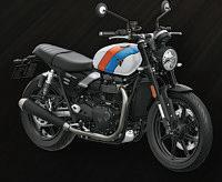 There are two versions of the T100, the 2V with cast aluminium road wheels,and the 2VX, with wire-spoked off-road-style rims (though they both have the same 19in front wheel and identical tyre sizes).
