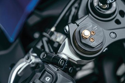 far as performanceisconcerned. Where Yamaha really hasgone to town is in the electronicsdepartment. To coincide with a six-axis IMU,there’sadecent 5in colour TFT dash, fully loaded with features and functions, including severaldifferent display screenstosuit road or track riding. As for the tech, it’sdefnitely not lacking –with everything from launch control to cruise control fnding itself at home.Based loosely around what you’d fndonthe R1, youalso get the likes of changeable powermodes, traction levels,wheelie control and slide control. And if you’reina hurrytoslow down, adjustable engine braking is also on the cards,alongside cornering ABS, that can be disengaged at the rear.Lastbut not least, alongside athird-generation shifter and blipper and the brand’slatest design of switchgears… youalso get ahorn.