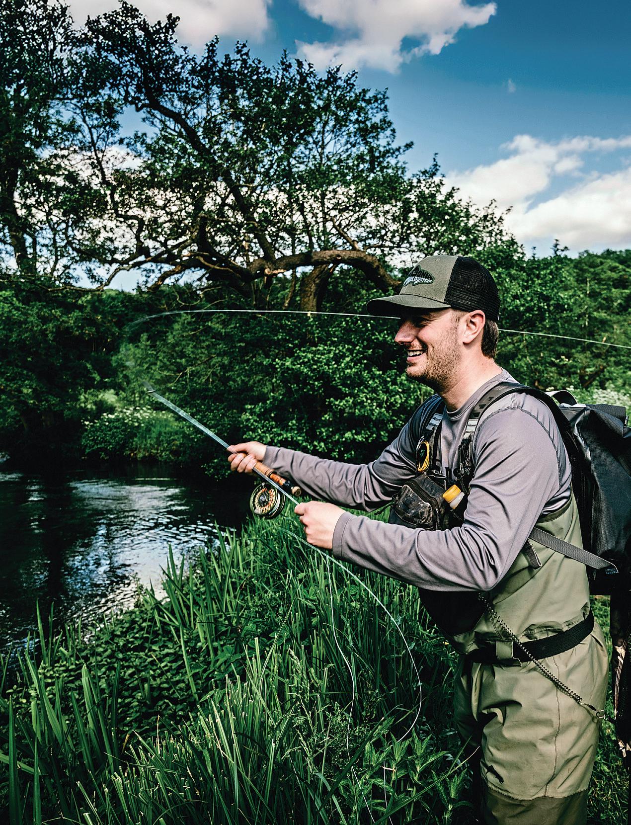 The seasonsofar formehas been one of discovery. Permanent roadworkshave forced me off my usual early seasonstretch of river, and so I’vespent adecent amount of time exploringasmaller stream higher up –atributary. It’sone of those rivers which is easily coveredand, in the summer,can produce an endless stream of rising fish in the 8-10 ouncebracket to dryfly.However,fish it in April, and youcan be in for asurprise. Early season this river holds some qualitytrout –justasCeri Thomasindicatedinthe April issue,the tributariesare whereyou will find the trophieslurking early on. Lastyear, Ihad one of my best browns of the season from here–one Iheard rise, rather than saw, as it slashed hungrily at olives. Ithought a tree branch had fallen in.