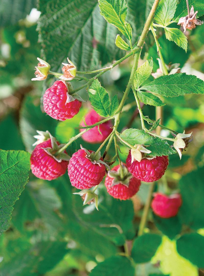 Unpruned autumncroppingraspberries will flower at thetop of their canes producing some verywelcome fruit