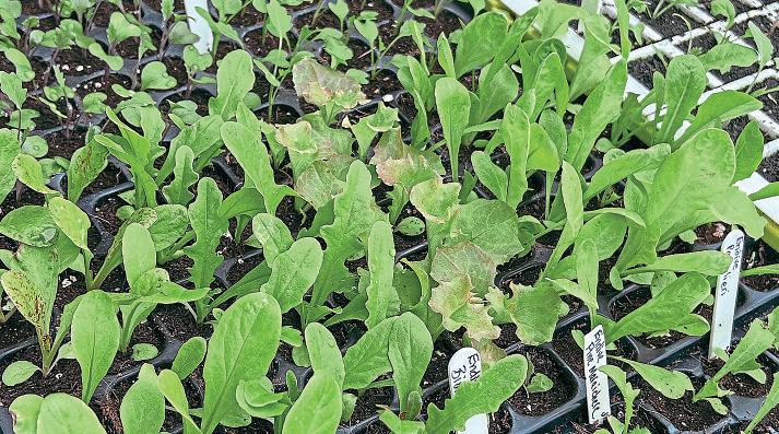 STEP 2: Growing transplants in modules makes the salads less likely to be eaten by slugs, but all of these can be direct sown too. When the transplants are about 10cm (4in) tall, plant out 20cm (8in) apart under cover.Make the most of space byplanting between existing crops such astomatoes.