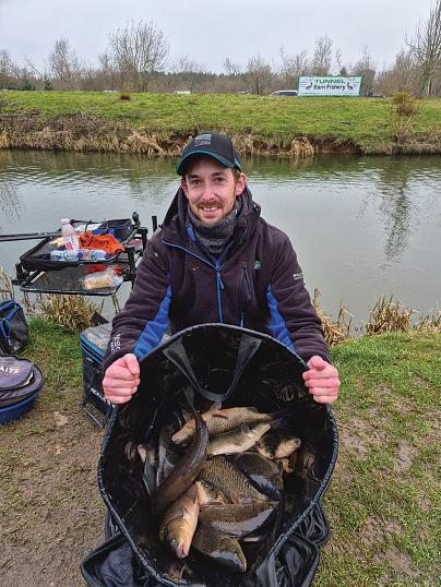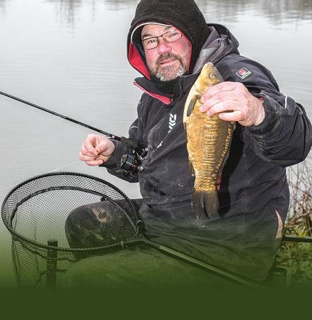 Liam Lunn visits Woodland Lakes andplays awaiting game to catch thevenue’s carp in thecold.