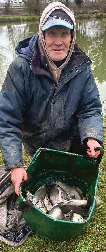 Andfnally,mylatest attemptwas aFishSouth Silver Fish qualifer at Ivy House. IdrewanareaI have struggled from before,Peg 15 on theOld MatchLake. Before thestart Iwas chatting to regularGaryEtheridge andwebothagreedPeg 10 wouldprobablywin as it’s normally consistent in winter forthe biggerskimmers. Littledid IknowGary actually went anddrewit!