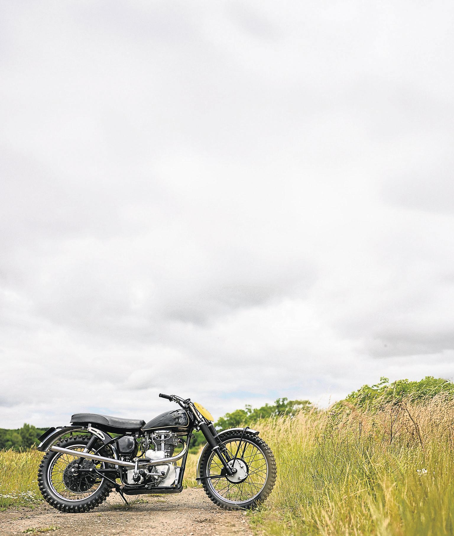 Basically,the models were based on standard MSS roadsters–which wasfairly normal practice at the time, for the off-roaderstobeclosely related to the on-roaders–with the engine modified. Though the standard frame wasretained, stiffer springs were fitted at the rear,while the front forks had two-way damping.There wasa 21in front wheel and 19in rear, with knobbly tyres (300 section at the sharpend and 400 at the back) of course, plus a shield under the crankcase for protection. There wasadifferent rear hub attached by six bolts, as opposed to four,with abig rear sprocket too.