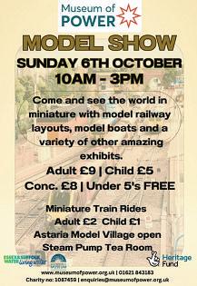 From 10am to3pn on Sunday,October 6, the Museum of Power in Hatfield Road, Langford, Maldon CM96QA will be hosting amodelshow,with model boats, model railway layouts and awhole host of othertransport in miniaturemodels exhibited. Visitors will also be able to take rides on the Langfordand Beeleigh Miniature Railway (£2 for adults, £1 for children), wander around the Astaria Model Village and along the riverbank in the lovely grounds, and take refreshments in the Steam PumpTea Room. Admission will be charged at £9 for adults (with concessions). For further details, visit www.museumofpower.org.uk