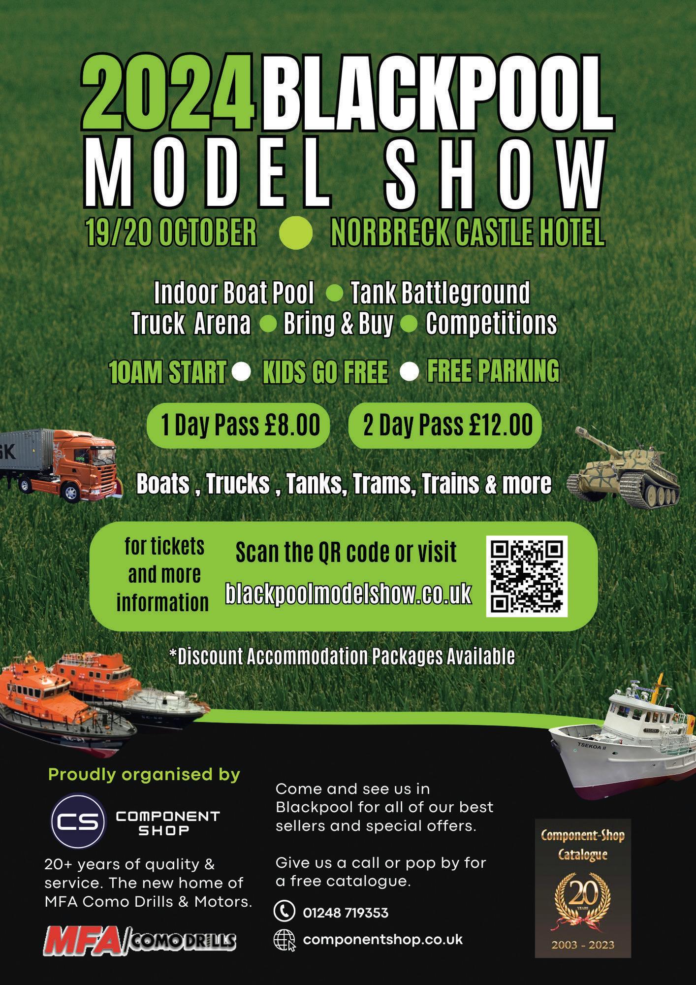 This year’sBlackpool Model Boat Show,scheduled for October 19-20, will once again be held at the NorbreckCastle Hotel, Queen’sPromenade, Blackpool, LancashireFY2 9AA. Doors will open from 10am to 4pm on theSaturday (Oct19) and10amto 3pm on the Sunday (Oct20).