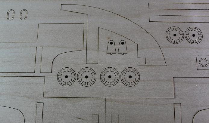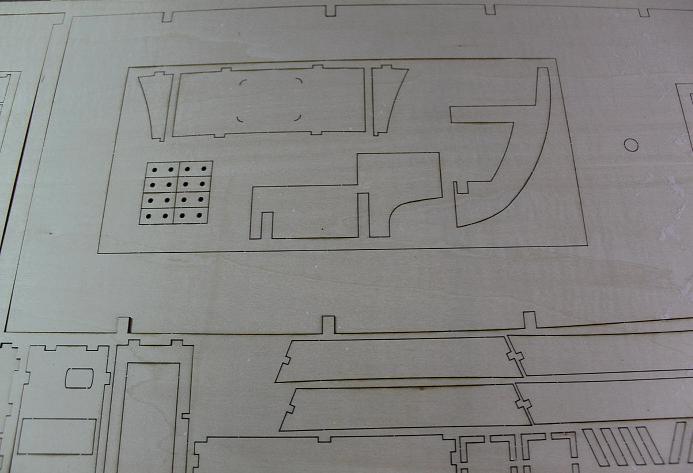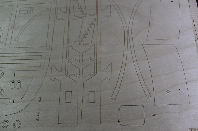 One little thing Idid notice with one of the plywood sheets in my Mercantic kit was that it appeared the laser used to cut it was perhaps operating at too high atemperature, as some of the material was blackened morethan usual and the glue had de-bonded slightly.