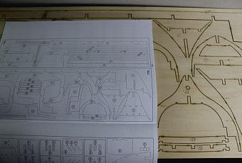 The parts identifier in the manual will direct you to the relevant laser-cut plywood sheet. Nick then uses apencil to mark each of the individual pieces on these sheets with their respective numbers.